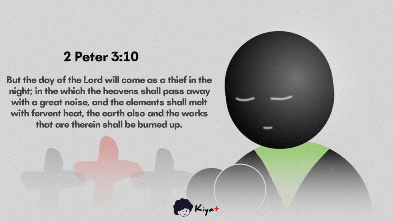 But the day of the Lord will come as a thief in the night; in which the heavens shall pass away with a great noise, and the elements shall melt with fervent heat, the earth also and the works that are therein shall be burned up.